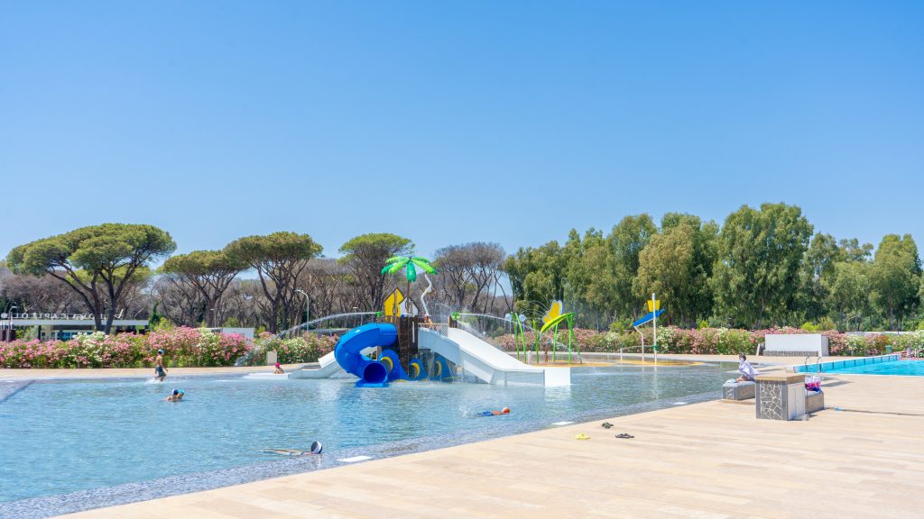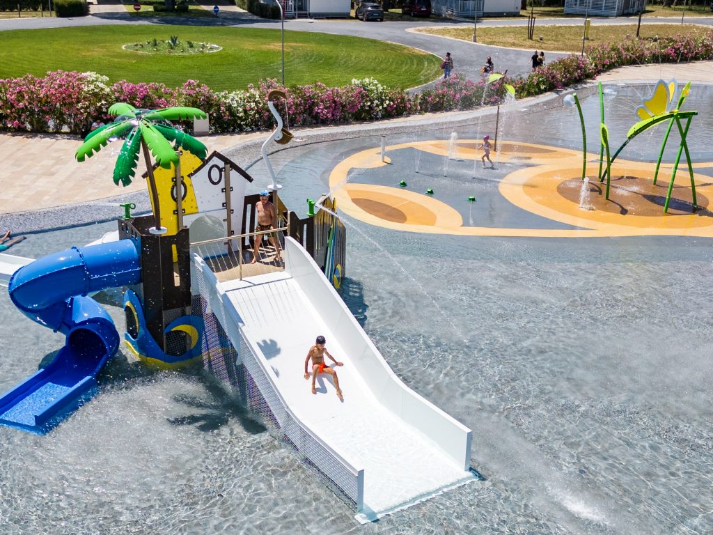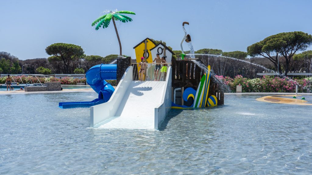 Around the water park umbrellas and sun lounger will allow you to sunbathe and be in the company of your family or friends.